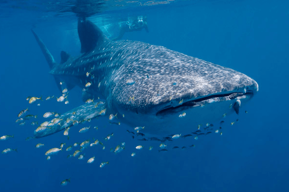 Whaleshark and snorkeller