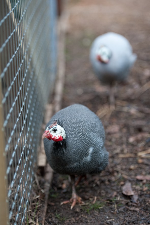 Posted: July 21, 2011 Filed under: Australia | Tags: Australia, Birds, Chickens, Gisborne, Guinea fowls, guinea fowls, Victoria Leave a commentI am housesitting at the moment. Along with the house comes three chooks and two guinea-fowl, who spend their daylight hours desiring the other side of the chicken wire. All five rush to the gate of their pen in the morning, desperate to be released into the garden. Once free, they set about displacing the ordered paths and beds of the garden.