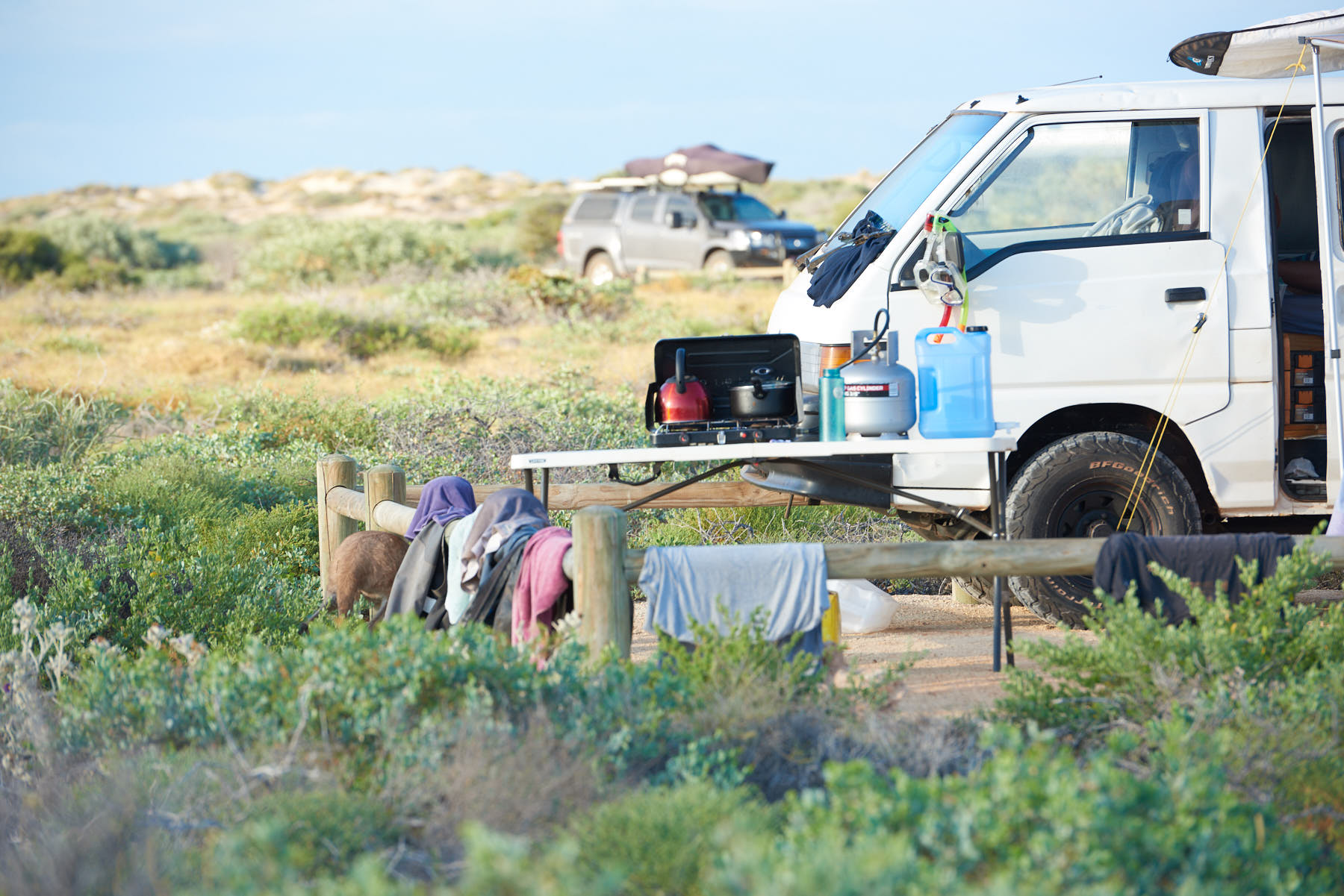 9 years and about 200000km later we are we are in our second Aussie Swag and out at Osprey, we are an oddity. It used to be a mix of hippy camper vans, a chaotic mess of two minute noodles, incense, tie dye, and an interior that looked like it needed a forensic clean, grey nomads in well loved Millard, Coromal and Jayco caravans, and tiny two man tents housing hardy Scandinavians, shelf stable wraps, cans of tuna and boiled eggs. Now it is either enormous caravans, roof top tents, or fancy camper vans, and about every two weeks a camper trailer may appear for a night or two. The demographic has changed over 15 years as well. What were hardy fisher folk, adventurous grey nomads, alternative lifestylers and remarkably intrepid Europeans are now mostly young families doing a one year loop, retirees, 25-30 somethings on a two week break seeking Insta moments, and a considerable representation of the European and South American continents. Campsites are awash with bikes, boats, scooters, skateboards, inflatable stand up paddle-boards, satellite and Starlink dishes. Some sites look like a teenage boys bedroom, others are, well, like ours.