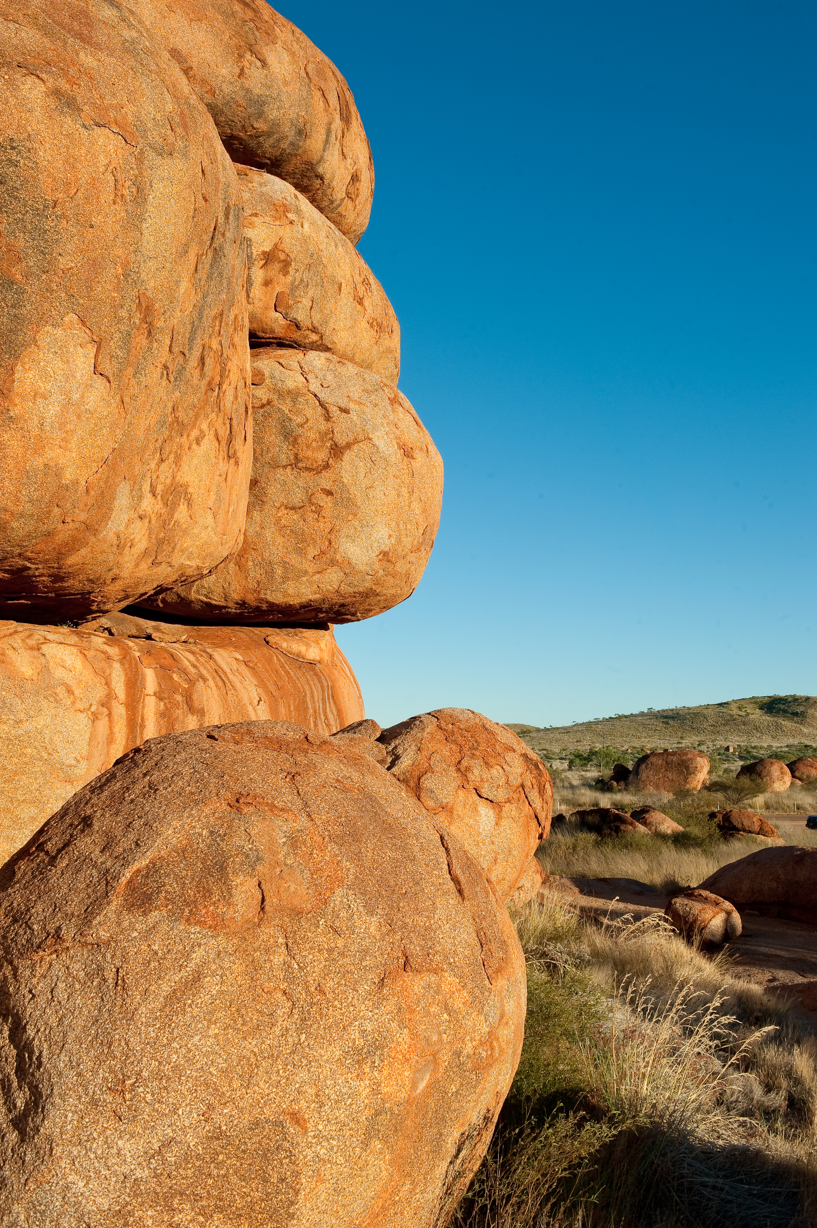 I’ve taken my standard break from looking at my roadtrip photos. This is because I generally do not like any of my photos when I first download them. Something to do with expectation versus reality perhaps? After a couple of weeks I see humour or potential in a handful. I loved the Devil’s Marbles despite, and perhaps even because of, my camp mates – see Day 22. When I look at this all I can see is Popeye (missing his corn cob pipe).