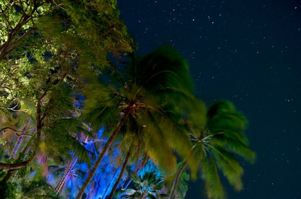 Posted: September 1, 2011 Filed under: Australia, Landscapes, QLD | Tags: Australia, Hayman Island, landscapes, night photos, palms, QLD, Trees, trees Leave a commentHayman Island seems to favour the wind powered sports. A roaring gale from sun-up mixed with the low tide estuary-style beach has me re-experiencing my Canterbury University days windsurfing on the Estuary near Sumner in Christchurch. The wind makes for a lot of movement in the foliage over my long night exposures, and it is lovely to be taking photos of a very different kind of vegetation to my usual. I am amazed at how green the results are – no freaky colours like other times.