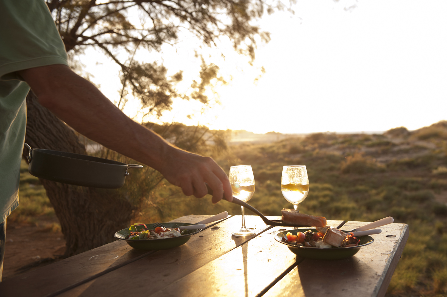 Unfurl camping chair and orientate toward other campers. Grasp glass of chilled NZ Sav Plonk with frozen grapes for extra chill and down as if your life (ok, relationship) depended on it. It actually does. For if you do not do this, your body would independently find its way into your vehicle and drive with the aircon on Lo until the fuel ran out.