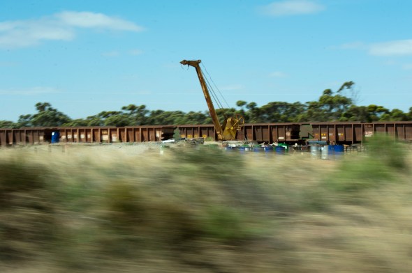 In Port Augusta we stocked up on limited fresh provisions in the knowledge we would surrender excess at the South Australian border, but determined to fend off scurvy. Lured by the glow of a carnival style $2 skill test machine (where you attempt to pick up chocolate bars with a metal claw), I was immediately joined by a cluster of preschoolers wanting to snatch the booty. A cascade of chocolate bars falling into the shute sent small hands diving in, grabbing the prize and racing off. Waz’s large hands prevented the distribution of the last three bars in the interests of preserved milk teeth.