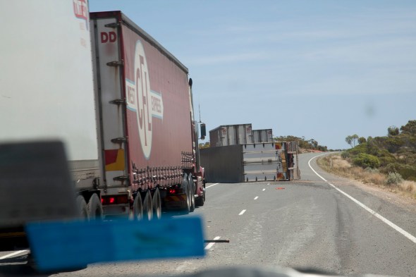 While Suz and I had eaten lettuce and all offending plant material before the WA border town of Eucla, Waz and Stevie celebrated with hot chips. Wedge-tail eagles were in abundance, cleaning up the less fortunate wildlife who lost the battle with unswerving truck drivers fueled on the heady treats of the roadhouse. These beautiful birds never fail to give me joy.