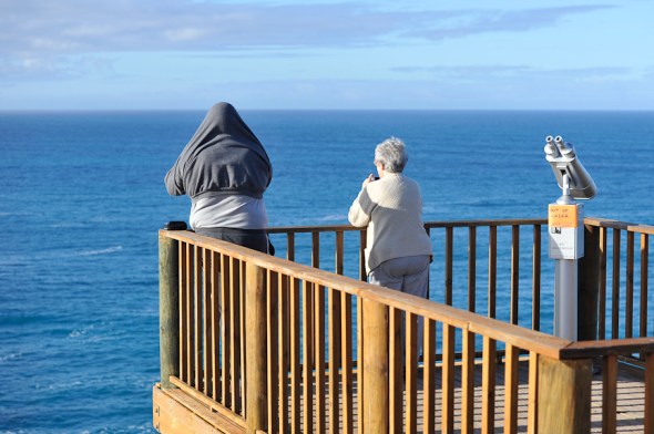A handful of kms later we were at the Head of the Great Australian Bight. From the platforms at the top of stunning cliffs we got to enjoy the antics and wonder of around 8 Southern Right Whales. A mother and calf stayed close to shore, and what was undoubtably a show-pony male, put a show on for ladies. The hearty gale racing through the carpark made for a most airy and pleasant long drop loo.