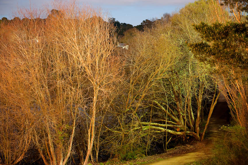 Posted: August 27, 2011 Filed under: Australia, Landscapes | Tags: Australia, Daylesford, landscapes, night photography, The Lake House, Trees, trees, Victoria 6 CommentsThanks to my fab husband I got to spend my birthday at The Lake House in Daylesford. A biting wind at 5pm told me it would be a clear night which usually translates to me wearing all the clothes from my wardrobe at once, and jumping from foot to foot to keep the circulation going in the arctic night, whilst W waves from warmth behind glass. These were my favourite photos from that night. The first one almost looks painted to me, in that classical style. The tiny pinecones and sawn-off log are what grabbed me to begin with, and the pretty, delicate, branches flanking an ominously disappearing path, like Hansel and Gretel would skip off down it never to be seen again. W’s favourite part is the tiny house in the middle.