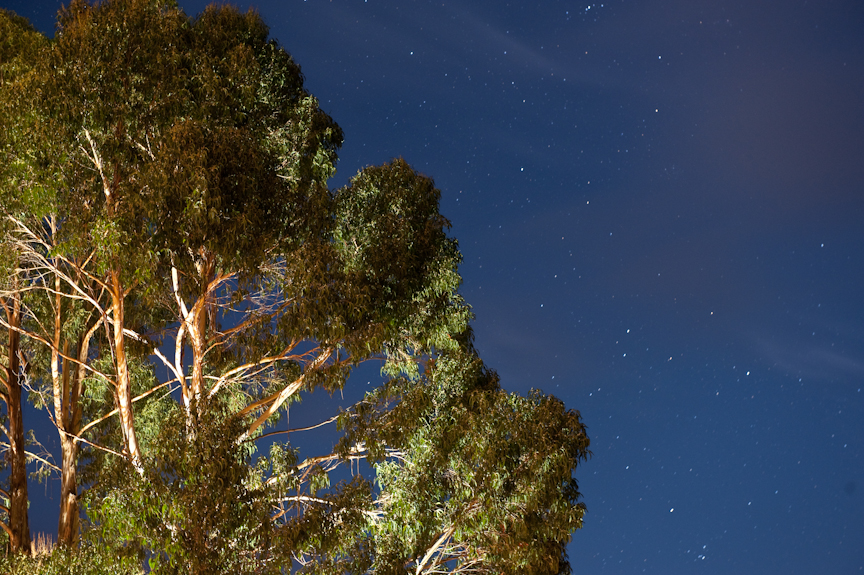Posted: September 26, 2011 Filed under: Australia, Landscapes | Tags: Australia, landscapes, Trees, Victoria, Woodend 3 CommentsIt’s 2am, zero degrees and I am out in my back yard, with too much caffeine on board, but taking advantage of the crystal clear night and almost no wind. I’ve changed the scale and distance from my subject and have discovered my puny torch is impotent. Ransacking the house and garage for all available light sources, it was me, a koala looking for a date, a lead-footed wallaby, a wombat crashing around, a headlight, and two torches. My first challenge: avoid my visible breath drifting across the camera lens mid-capture.