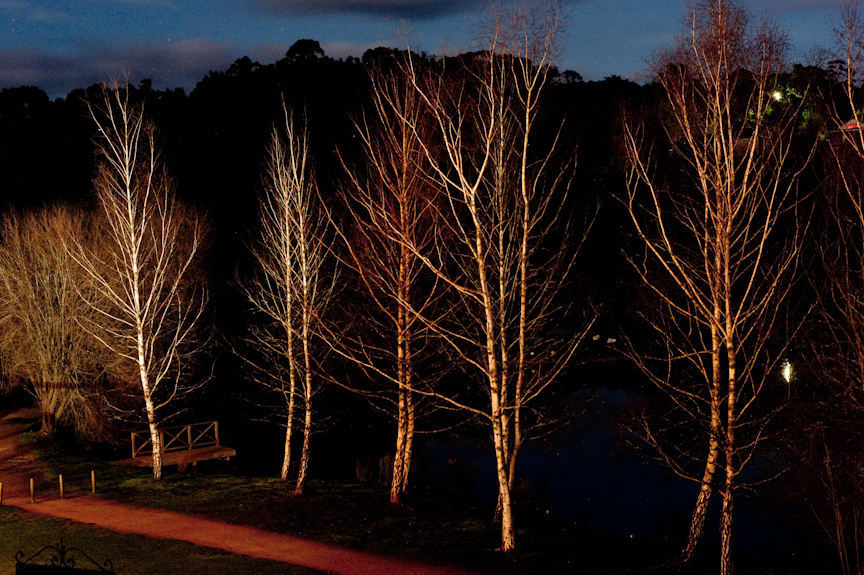 The second biggest challenge was actually getting enough light to focus on the subject matter. After an hour, I had a blast of inspiration. My studio lights. 600w of joy in each one, not exactly fit for purpose, but all sorts of things seem reasonable in the wee hours. Standing with one on my shoulder pointing at the trees, and risking electrocution (my lecturers warnings ringing in my ears!) it still wasn’t enough. I stuck it out, blindly focussing until my fingers ceased operating, and nose would not stop streaming. Tomorrow, you will find me shopping in the industrial floodlight department.